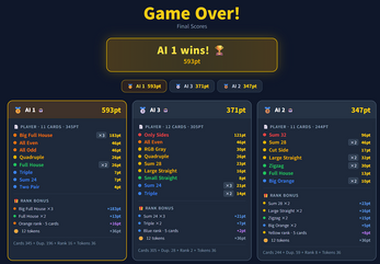 12턴에 걸쳐 족보 카드를 모아 최고 점수를 얻는 게임입니다.